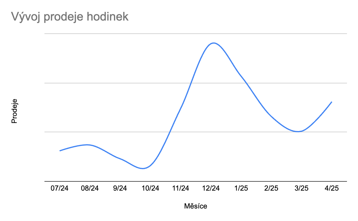 📈 Po spuštění propagace daného typu hodinek v listopadu 2024 došlo k výraznému růstu prodejů – mezi říjnem a listopadem vzrostly prodeje hodinek o 362,5 %. Tento nárůst byl podpořen nejen spuštěním propagace, ale také správným načasováním na začátek vánoční sezony.