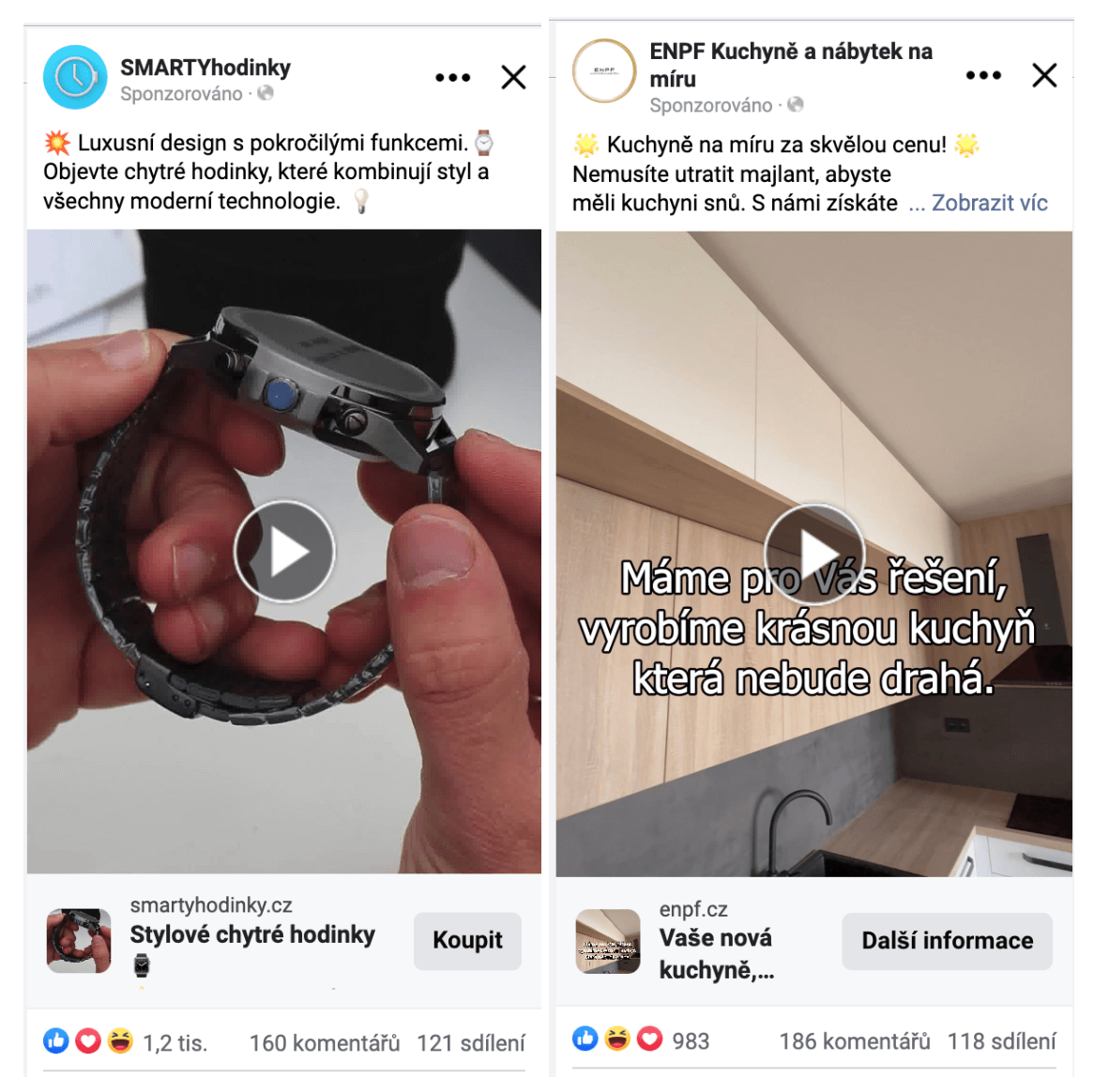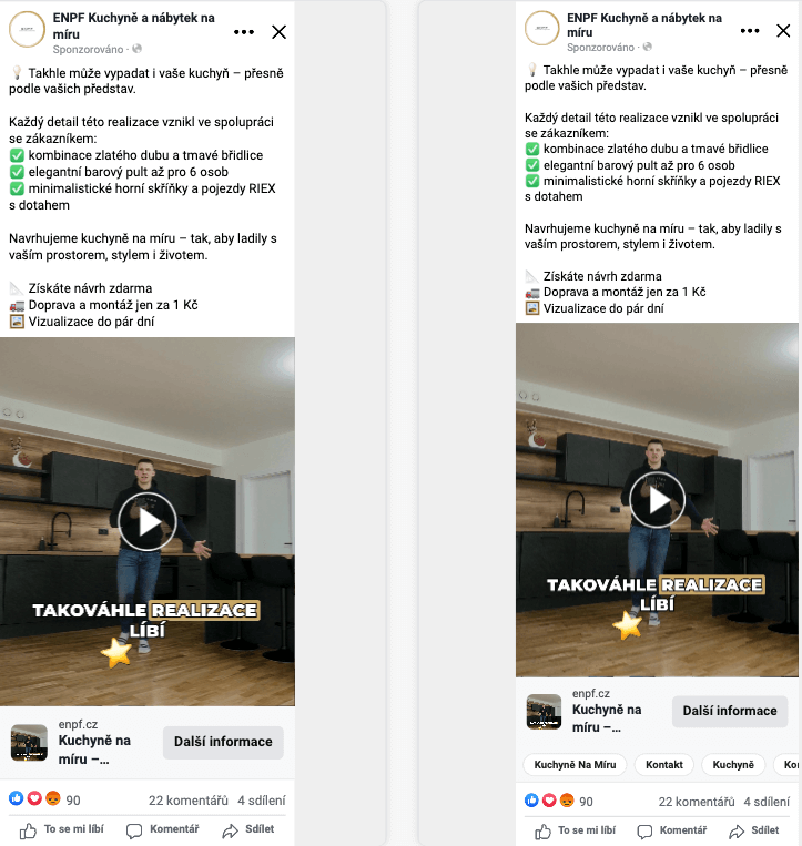 Na začátku jsme reklamy cílili na široké publikum bez vyloučení stávajících zákazníků. To vedlo k tomu, že se pod reklamami začaly objevovat komentáře od lidí, kteří už produkt zakoupili. U hodinek psali například své zkušenosti, často přidávali i fotografie hodinek z běžného používání. U kuchyní se zase začali ozývat spokojení zákazníci, kteří sdíleli pozitivní zkušenost s realizací zakázky. K získání komentářů mohou pomoct také otázky a výzvy k reakci pod reklamou.