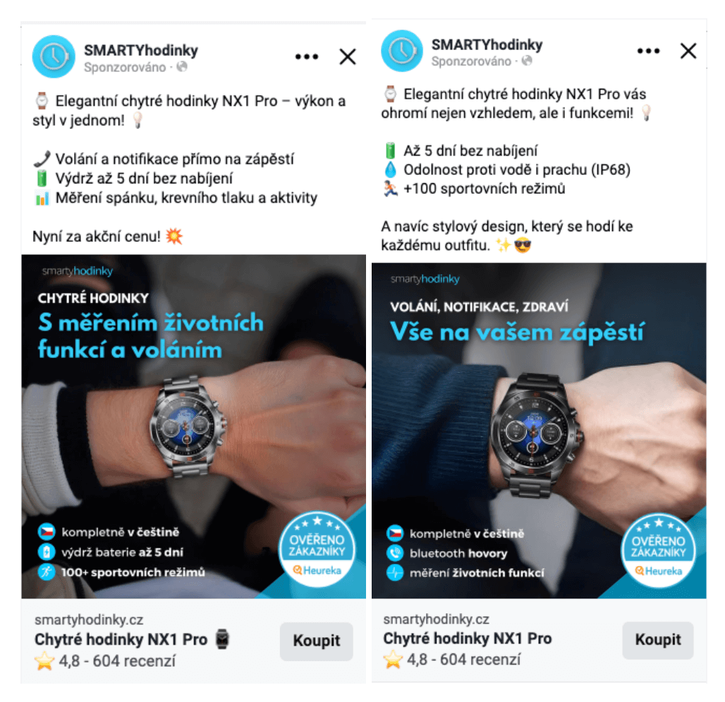 U klientů Smartyhodinky.cz a ENPF jsme využili značného množství reakcí pod reklamními pčíspěvky. Za pomocí AI jsme udělali analýzu, na základě které jsme upravili texty, vizuály a testovali nové varianty. Co zákazníci psali? Co je zajímalo nejvíc?